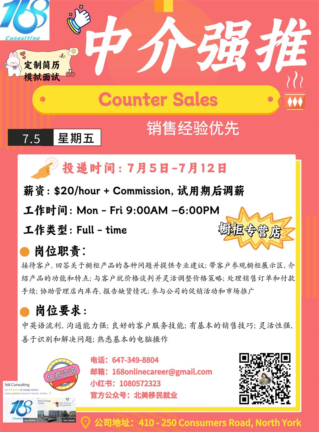 【168新岗】密西橱柜专营店请Counter Sales 1名