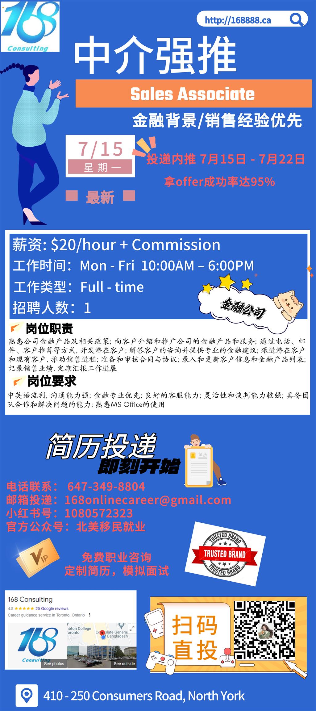 【168新岗】列治文山金融公司请Sales Associate 1名