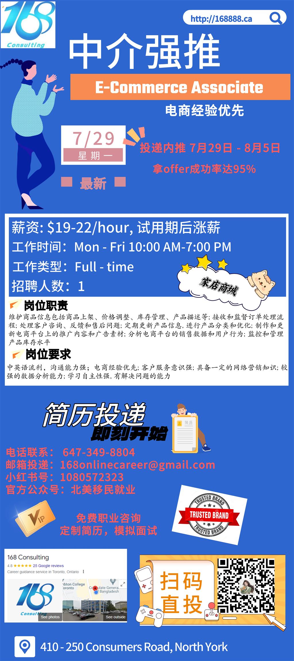 【168新岗】多伦多家店商城招聘E-Commerce Associate 1名