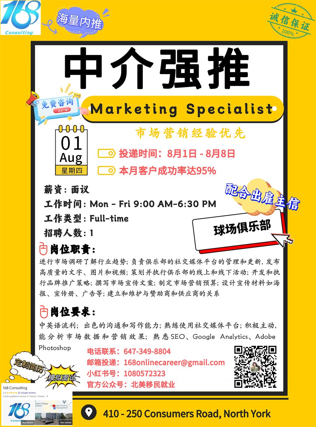 首页 > 招聘求职 > 【168新岗】万锦球场俱乐部招聘Marketing Specialist 1名(可移民)