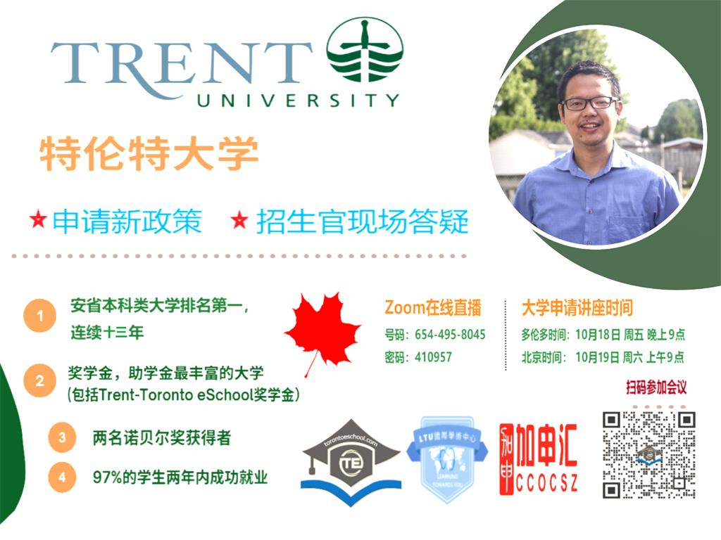 首页 > 便民黄页 > 特伦特大学招生官在线讲座 10月18日周五晚9点