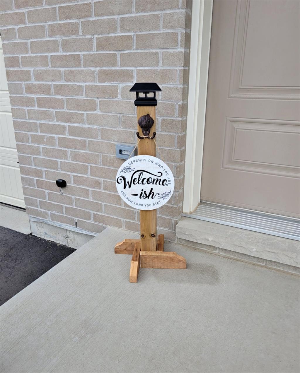 木质带有太阳能灯的欢迎牌