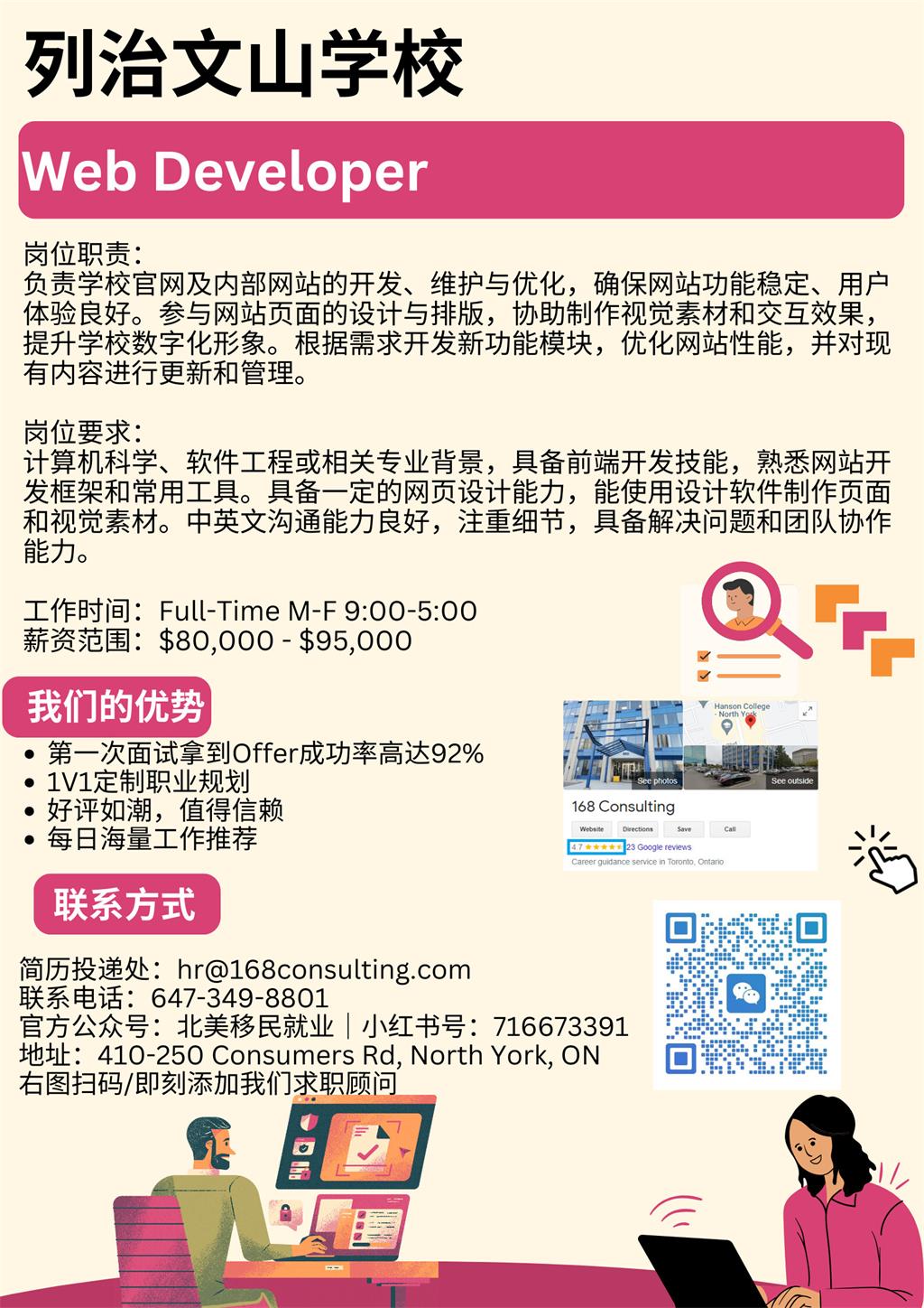 首页 > 招聘求职 > 【168中介内推】列治文山学校 Web Developer